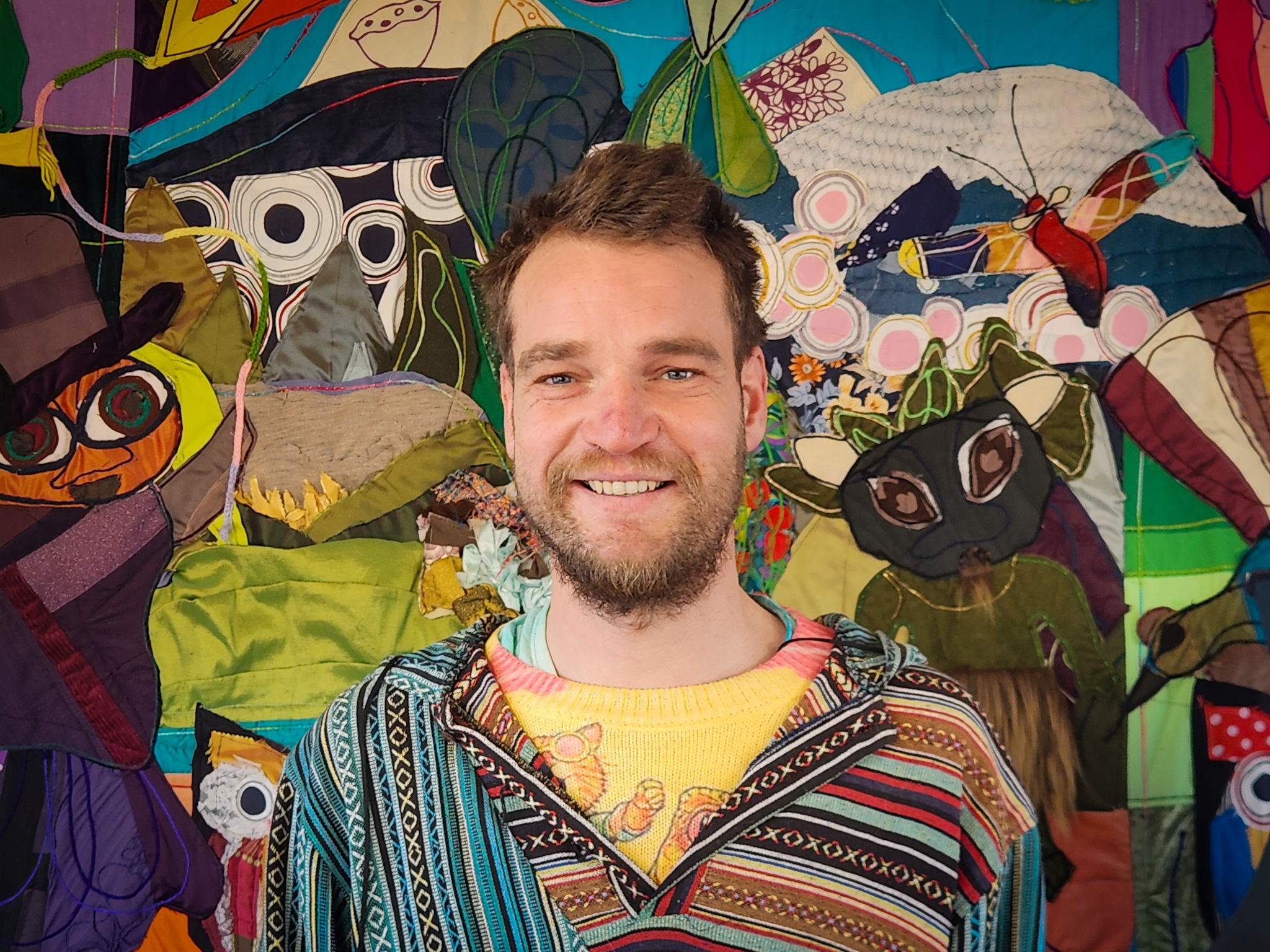 Liam is an experimental artist who loves exploring new mediums and subject matter. His work is often abstract and rich with colour, drawing on graffiti, spray paint, and mixed media. He also tie-dyes T-shirts and other functional clothing, extending his art practice into everyday life. Liam pushes his boundaries with unexpected materials and is inspired by bold shapes, geometric forms, and the artwork of Kandinsky. He aims to create pieces that reveal something new with each viewing, offering a fresh experience every time.